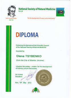 06 мая 2012 года рук. Консультационного Центра Системы акад. Миание М.Ю. — Цыбенко Е.В. была награждена почетной медалью Вернадского В.И. » За развитие науки, культуры и общества».